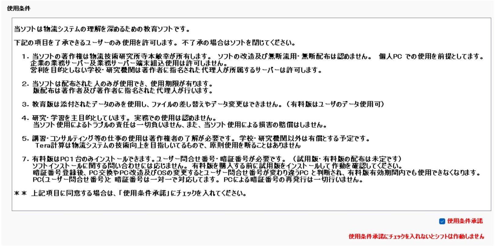第2項計算ソフト使用制限と免責事項 |