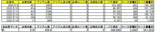 出荷データは60.000レコード 配送センターの規模は、中規模の上位から大規模の下位の位置づけ? 業種は小型家電・電子機器のBtoBを主体とした配送センターを想定している。 |