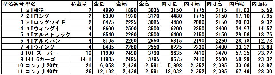トラックの車種により荷台の積載容量が異なる。 積載容量を設定するために計算対象の車種を一択選択する。 選択した車種により旋回半径が異なり、敷地レイアウト時影響を与えることを留意する。入荷はアイテム当たりの数量多いため出荷より大型車が使用される。 また、複数配送センター納品を行う車が(積載の荷を全て降ろさない)ある。