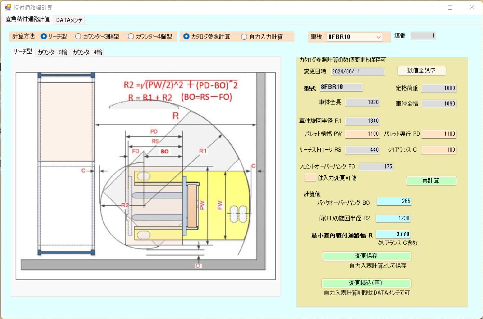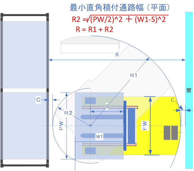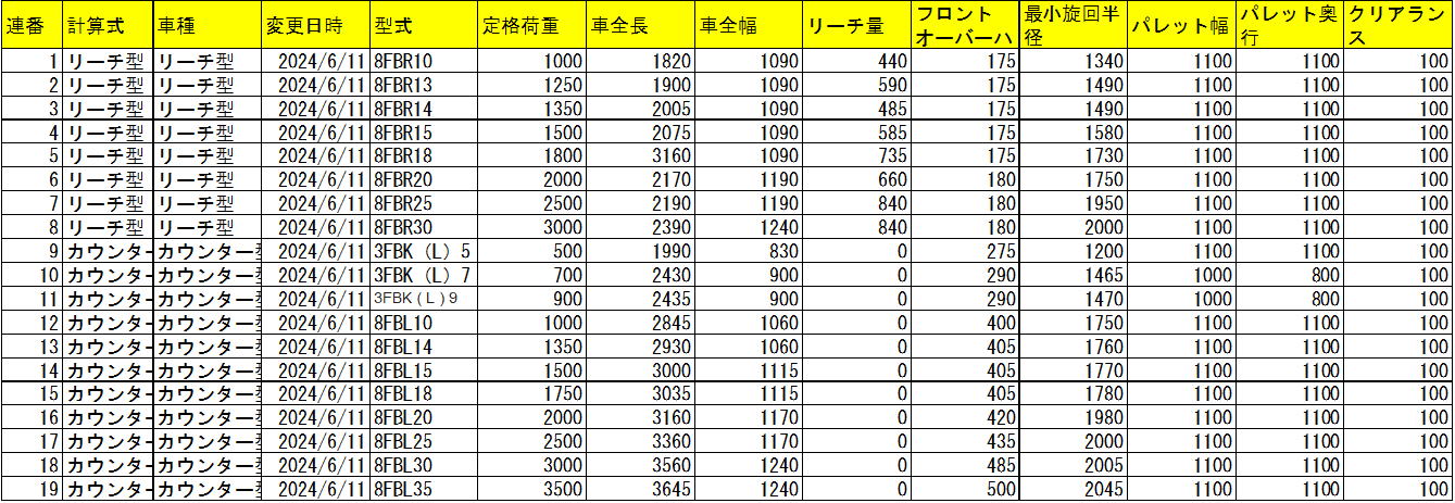 各メーカ、型式・車種が一緒なら積付通路幅はほぼ同じ。