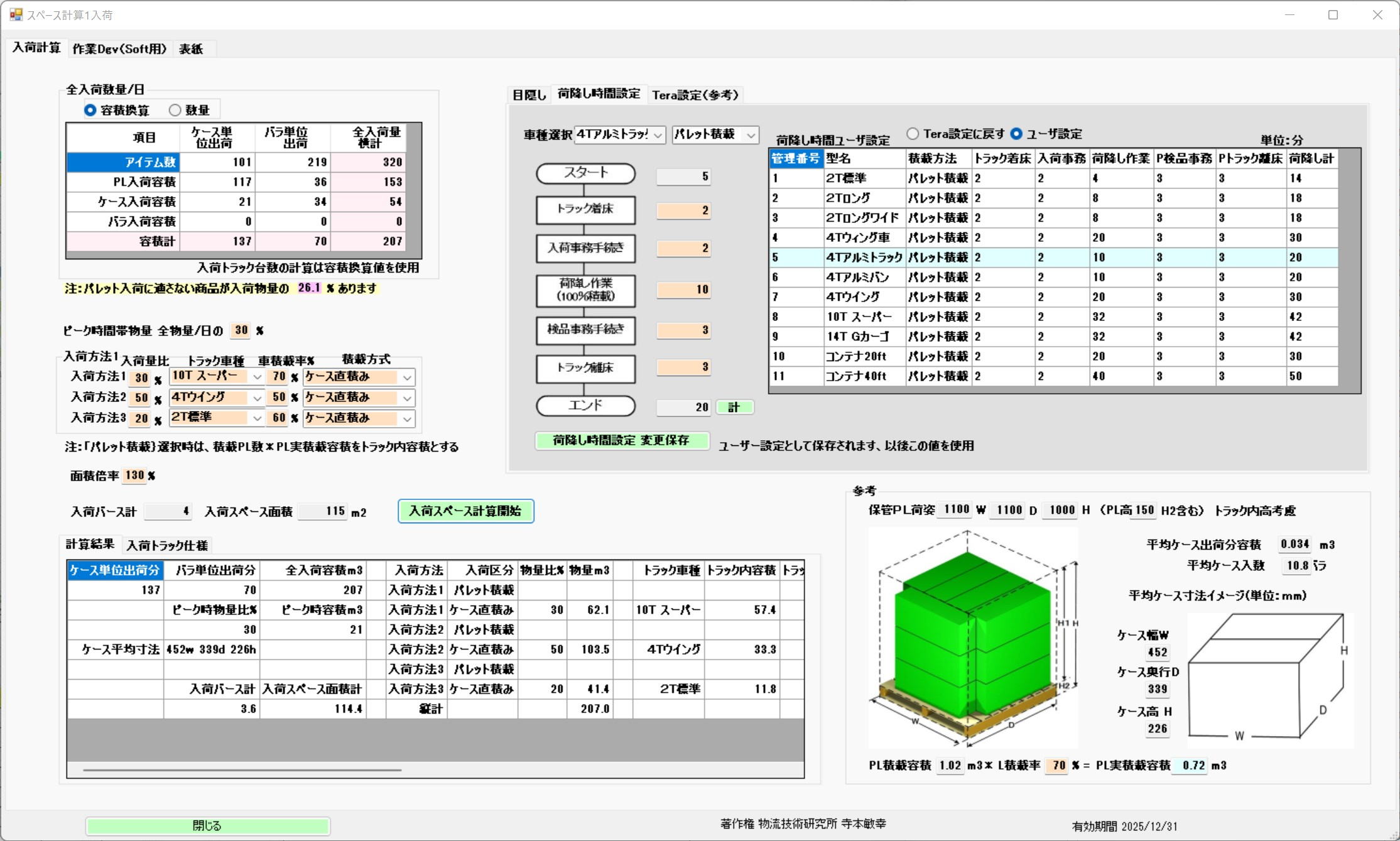 表のレコード行をクリックすると積付平面図が連動して表示される。