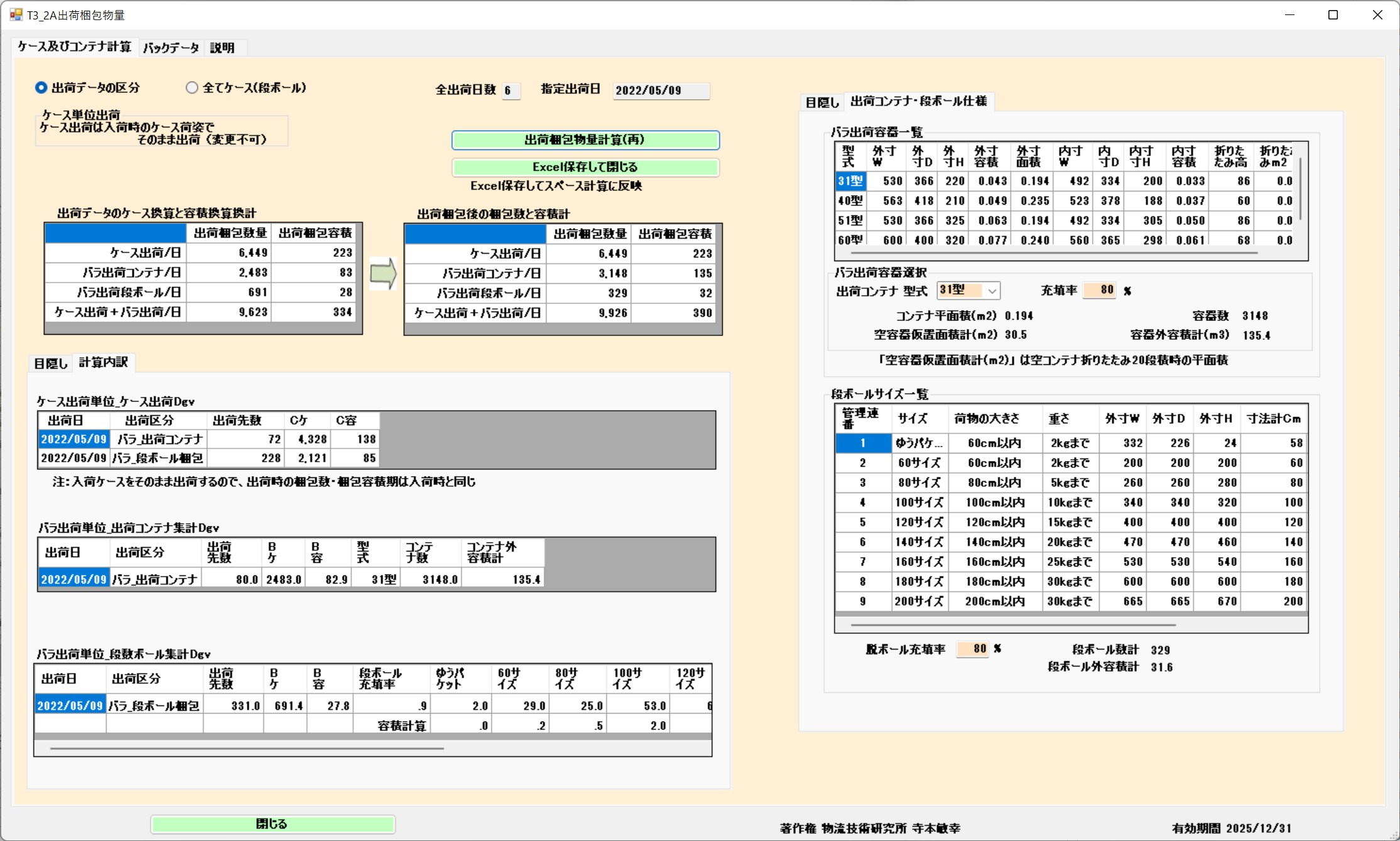 表のレコード行をクリックすると積付平面図が連動して表示される。