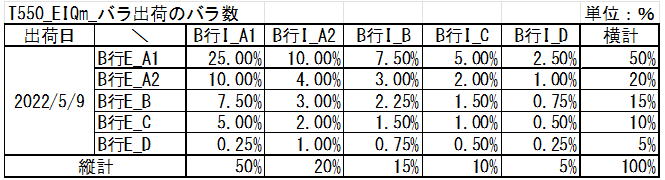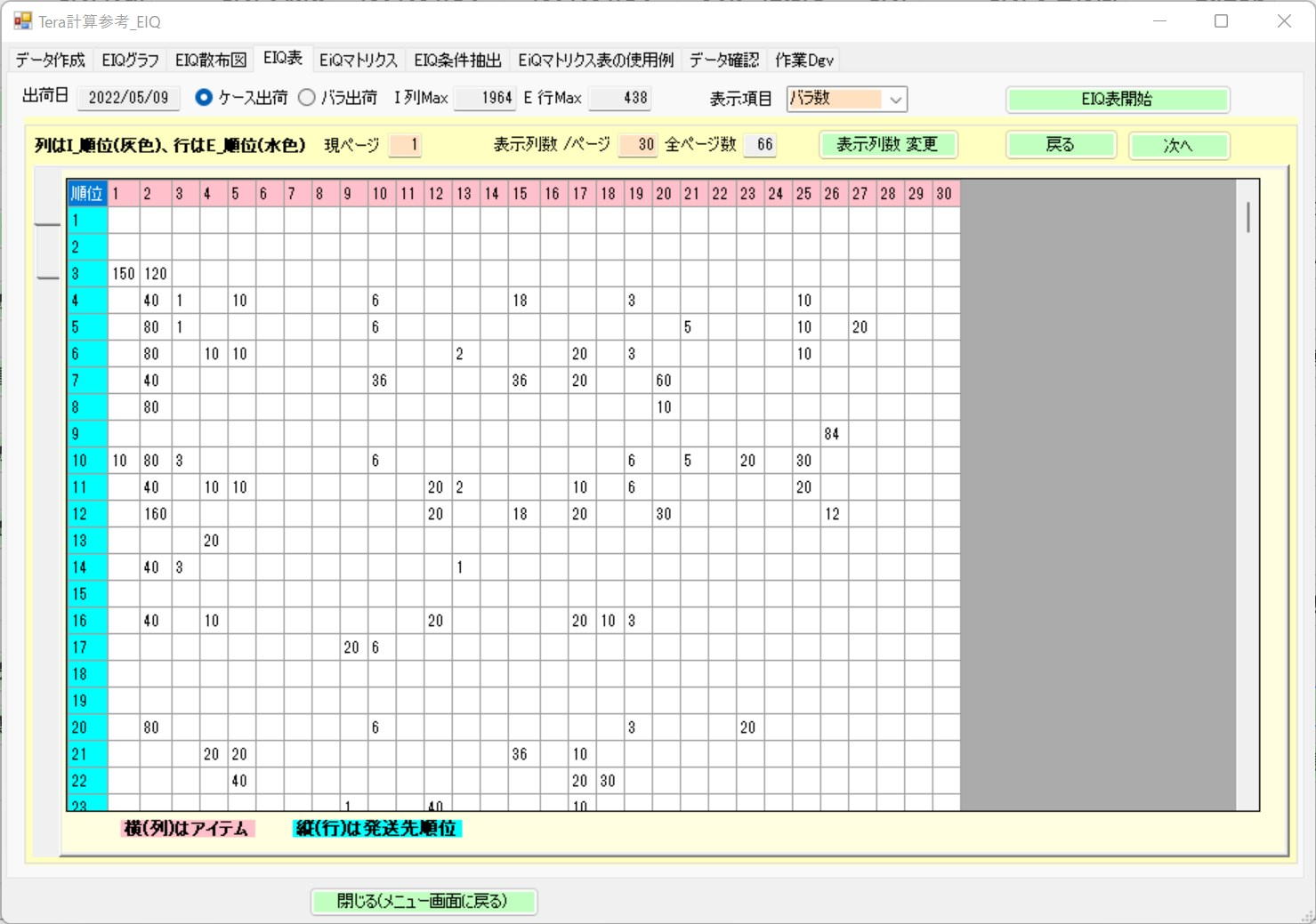 | EIQ表は種まき表と書いたが、縦列がアイテム横行が出荷先である。 |