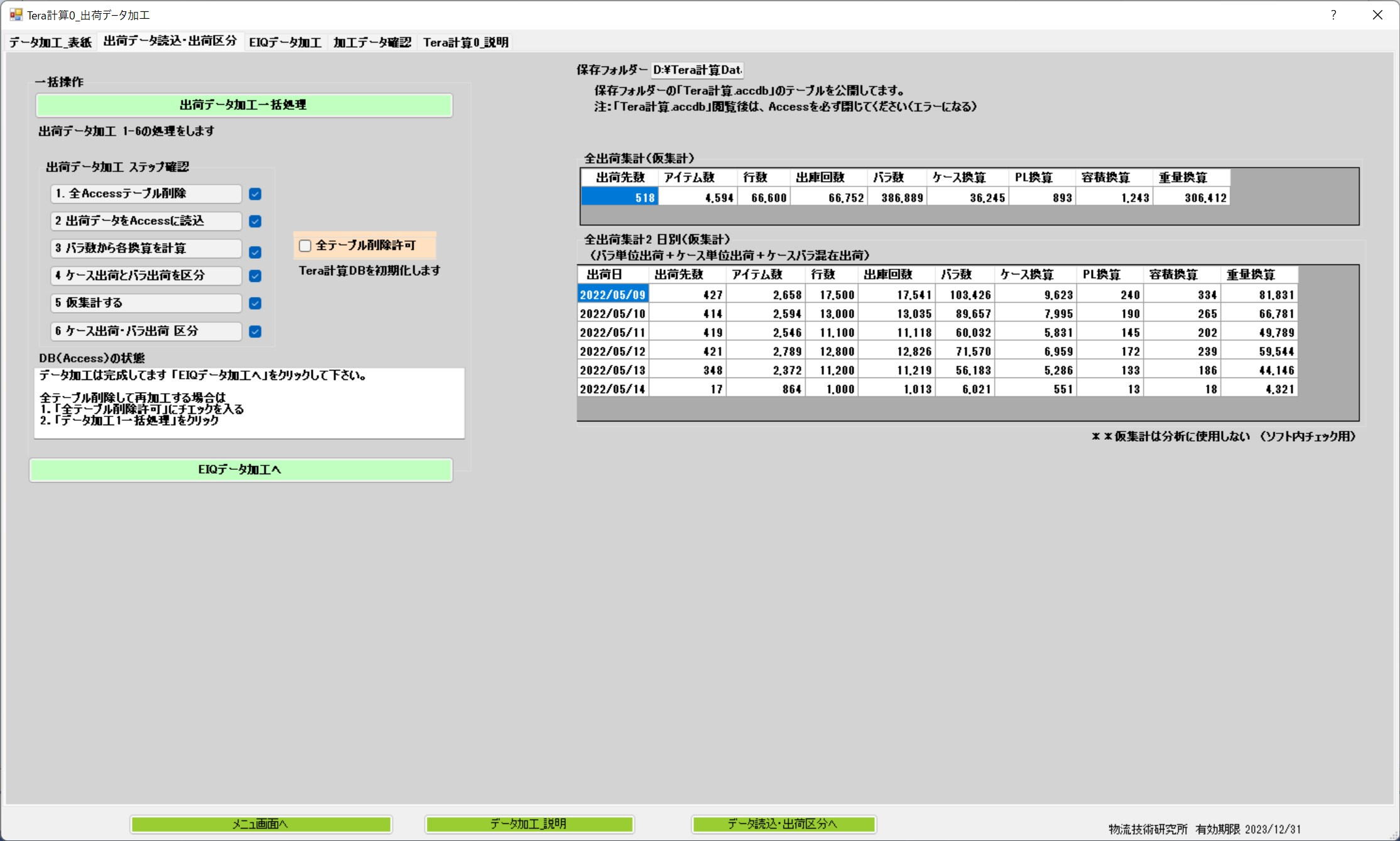 出荷データを加工して、Tera計算1・2に使用するデータを作る